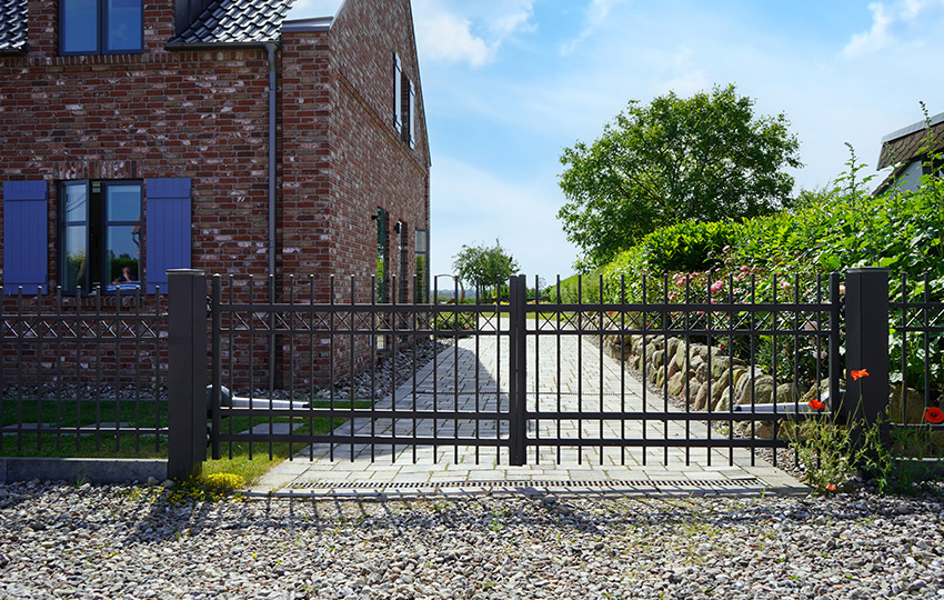 Dein Schwenktor öffnet sich in der Mitte mit zwei großen Torflügeln oder asymmetrisch mit einem großen und einem kleinen Torflügel. Besonders bei Grundstücken auf welchen Schiebetore nicht installiert werden können, kannst du mit einem Schwenktor nichts verkehrt machen. Bei elektrischem Torantrieb kommen unsere Tore mit starken 140 x 140 mm Pfosten, sodass die Steuerung im Pfosten integriert werden kann.
