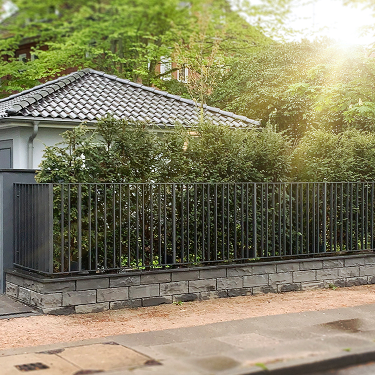 • Zaunstärke: Rahmen und vertikale Streben 40 x 8 mm, weitere Maße auf Anfrage